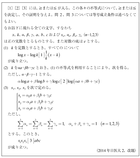 [C]イェンゼンの不等式と対数関数の問題(2014年日本医科大2)