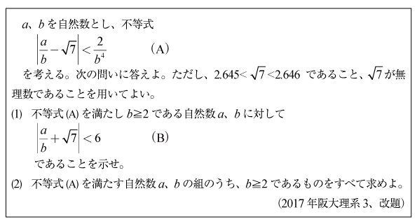 [C]三角不等式と無理数の問題(2017年阪大理系3)