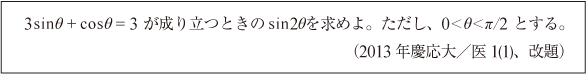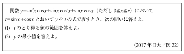 [A]三角関数の対称式の問題(2017年日大/医22)