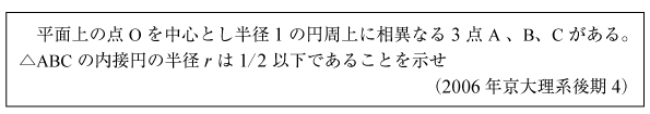 [C]三角形の内接円の半径の問題(2006年京大理系後期4)