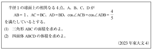 [C]球面内の面積と体積の問題(2023年東大文4)
