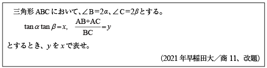 [B]三角関数の計算問題の良問(2021年早大/商11)