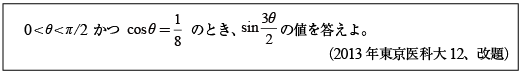 [B]3/2倍角の余弦を求める問題(2013年東京医科大12)