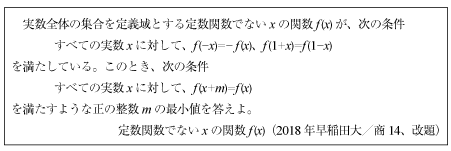 [B]関数式で定義された関数の周期を求める問題(2018年早大/商14)