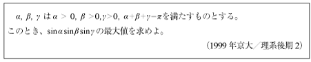 [C]三角形の3角の正弦の積の最大値を求める問題(1999年京大理系後期2)