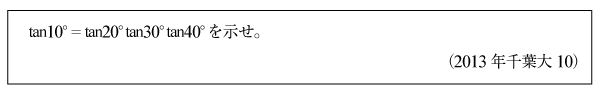 [B]tan10°= tan20°tan30°tan40°の証明の問題(2013年千葉大10)