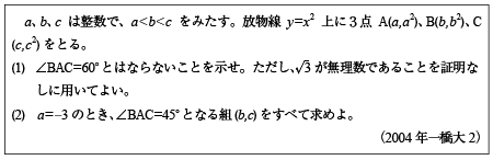 [B]2次関数と三角形と整数問題の融合問題(2004年一橋大2)