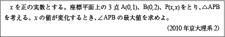 [B]tan加法定理を利用する問題(2010年京大理系2)