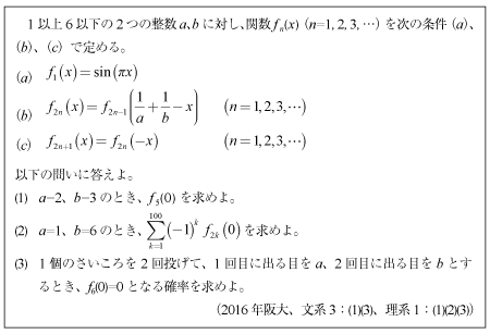 [C]三角関数と確率の問題(2016年阪大文3理1)