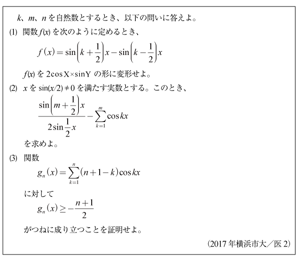 [D]三角関数の級数の問題(2017年横浜市大/医2)