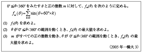 [B]三角関数の級数和の最大値の問題(2005年一橋大3)