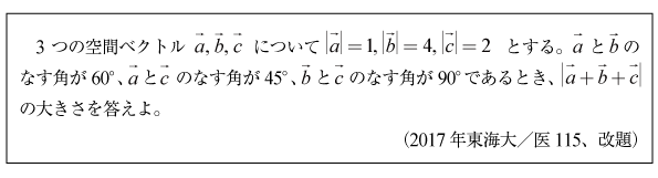[B]3つのベクトルの和の大きさの問題(2017年東海大/医115)