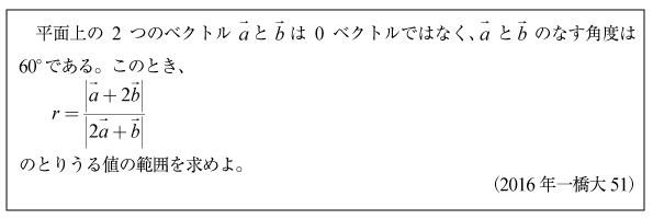 [C]ベクトルの大きさの比の値域の問題(2016年一橋大51)