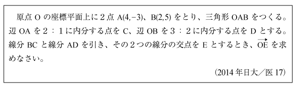 [A]ベクトルの内分点の問題(2014日大/医17)