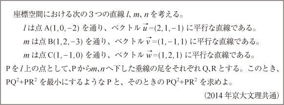 [B]直線の方程式と内積の問題(2014年京大理1)