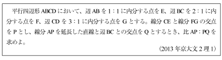 [C]平面図形でベクトル方程式を複数回利用する問題(2013年京大文2理1)