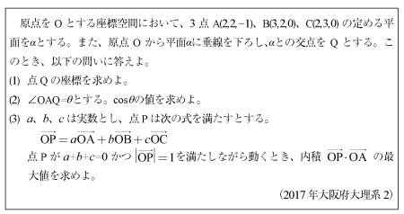 [B]平面に下した垂線の足にかかわる問題(2017年大阪府大理系2)