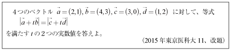 [A]ベクトルの内積からパラメータを求める問題(2015年東京医科大11)