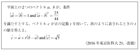 [B]ベクトルの内積からパラメータを求める問題(2016年東京医科大21)