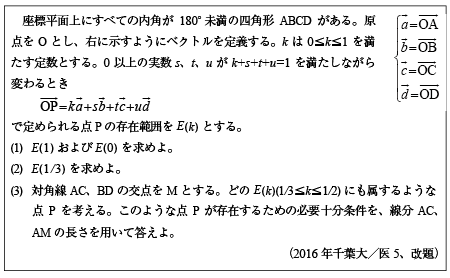 [C]平面ベクトルの1次結合のかなり難しい問題(2016年千葉大/医5)