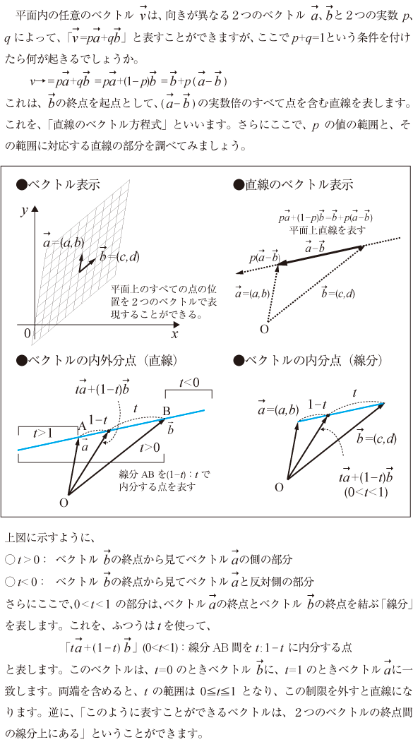 ・直線あるいは線分上の内分点・外分点があつかいやすい。