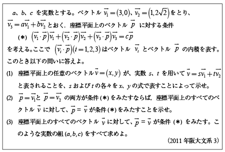 [B]ベクトルの1次結合に関する基礎的な問題(2011年阪大文系3)