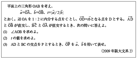 [C]平面三角形に関するベクトル問題(2009年阪大文系2)