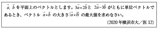 [A]単位ベクトルに変換する問題(2020年横浜市大/医12)