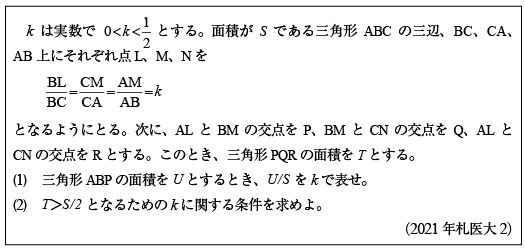 [C]メネラウスの定理を適用する問題(2021年札幌医大2)