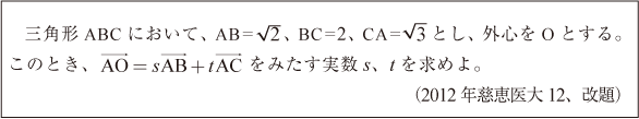 [B]外心とベクトル方程式の問題(2012年慈恵医大12)