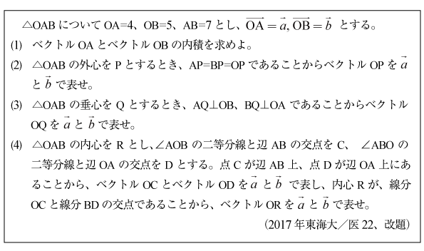 [C]外心・垂心・内心のベクトル問題(2017年東海大/医22)