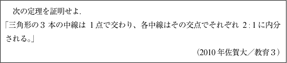 [B]三角形の中線の交点の内分比の証明(2010年佐賀大/教育3)