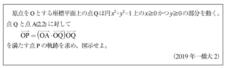 [C]ベクトルの内積で定義された軌跡の問題(2019年一橋大2)