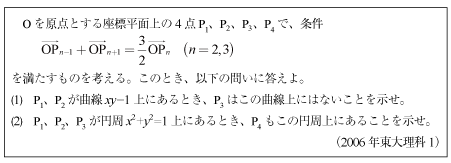[B]ベクトルの漸化式があらわす図形の問題(2006年東大理1)