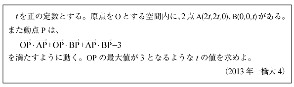 [C]ベクトルの内積で定義した球の問題(2013年一橋大4)