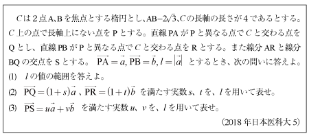 [C]楕円上のベクトル方程式の問題(2018年日本医科大5)