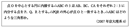 [B]三角形とその辺上内分点のつくる三角形の外心一致条件(2007年京大理4)
