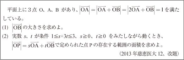 [B]ベクトル方程式で面積を求める問題(2013年慈恵医大12)