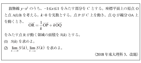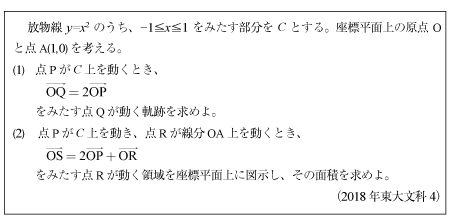 [B]ベクトルの軌跡・領域と面積の問題(2018年東大文科4)