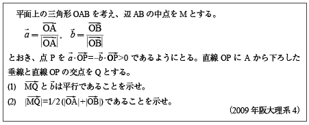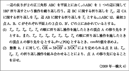 [C]単位ベクトルを使う三角形の問題(2009年阪大理系4)