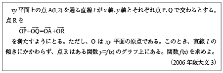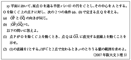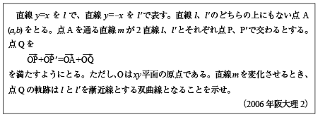 [B]ベクトルの終点の軌跡を方程式で求める問題(2006年阪大理系2)