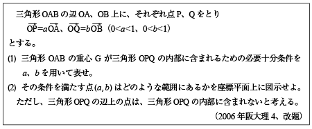 [B]三角形の重心が内部三角形に含まれる条件の問題(2006年阪大理系4)