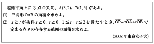 [A]ベクトル方程式による図形の面積の問題(2008年東京女子大)