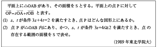 [B]ベクトル方程式と面積の問題(1989年東北学院大)