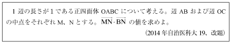 [B]正四面体内のベクトルの内積の問題(2014年自治医大19)