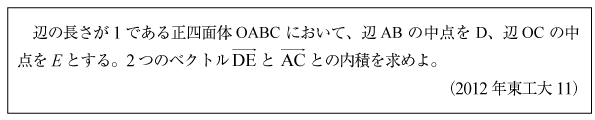 [B]正四面体内のベクトルの内積の問題(2012年東工大11)