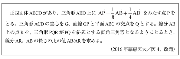 [B]正四面体と直角三角形の問題(2016年慈恵医大4)