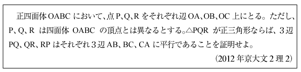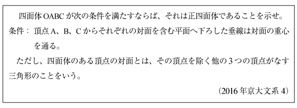 [C]正四面体に関する証明問題(2016年京大文系4)