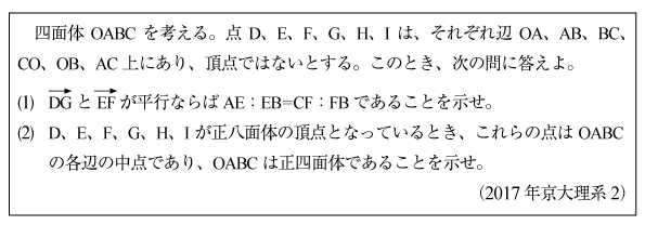 [C]正四面体の中の正八面体の問題(2017年京大理系2)