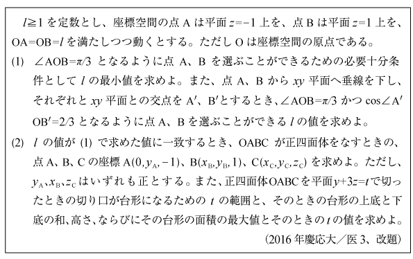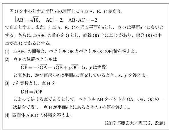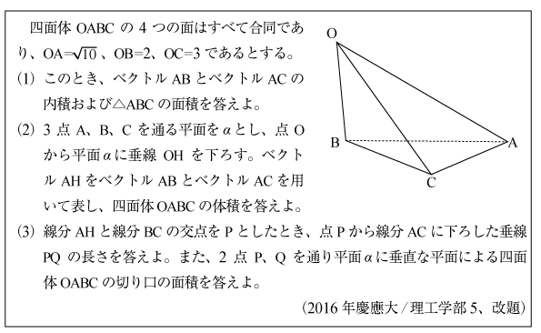[C]四面体の体積の問題(2017年慶應大/理工2)
